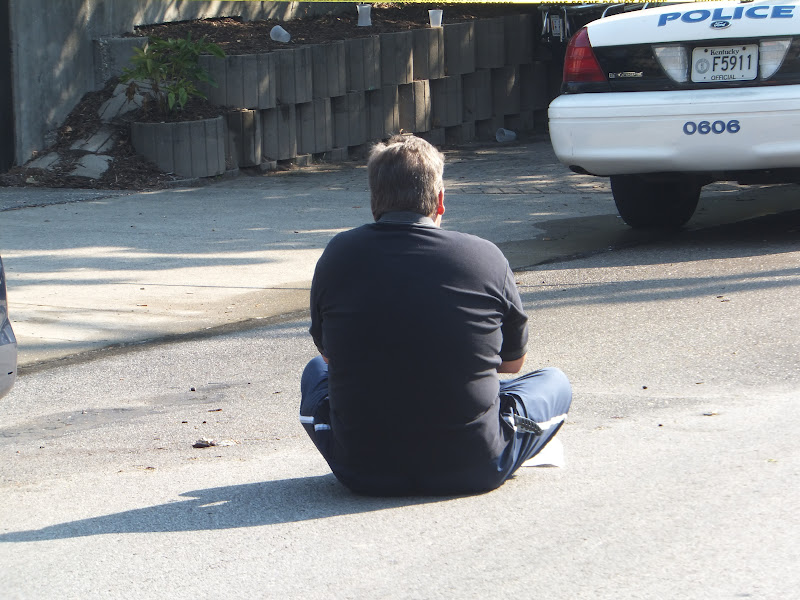 Landrum rushed from his Bromley home to the scene after initially hearing of the possible break-in. "I got a call this morning about 7:30 and I was wetting my hair down 'cause we were gonna go to breakfast," he said. "I went in and pushed the answering machine and it said the burglar alarm dropped, I'm used to that, it happens down here quite often, used to happen a lot more than it does now. I said, 'OK', told 'em I'd be right back, put my pants on and grabbed my keys and headed down. I got about half way through Ludlow, maybe into West Covington and got a phone call from the burglar alarm company and they said the fire department wanted to know if anyone lived upstairs and I said, No, why? And they said, well we have a working fire and so I started speeing up and and as I looked up I seen black smoke in the sky and I though there's no way that's from there and then the closer I got the more I realized, yeah it was."